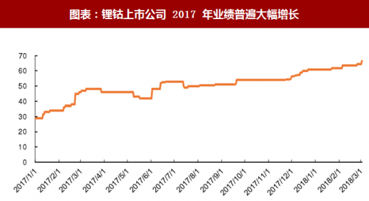 图表:锂钴上市公司 2017 年业绩普遍大幅增长