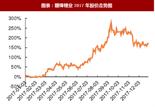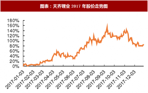 2017 年钴锂价格走势强劲。尽管 2017 年二季度受有艱板块整体走势影响有所回调,但在良好业绩支持下,全年股价涨幅仍然喜人,其中,锂龙头公司天齐锂业、赣锋锂业股价分别上涨 84%、171%,钴龙头企业华友钴业、洛阳钼业股价分别上涨 128%和 86%。
