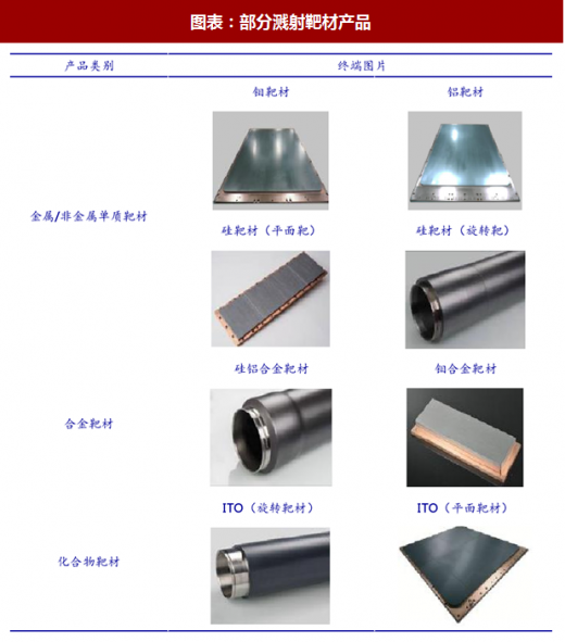 溅射靶材主要由靶坯、背板(或背管)等部分构成,种类颇多。其中,靶坯是高速离子束流轰击的目标材料,属于溅射靶材的核心部分,在溅射镀膜过程中,靶坯被离子撞击后,其表面原子被溅射飞散出来并沉积于基板上制成薄膜材料;由于溅射靶材需要安装在专用的设备内完成溅射过程,设备内部为高电压、高真空的工作环境,多数靶坯的材质较软或者高脆性,不适合直接安装在设备内使用,因此,需与背板(或背管)绑定,背板(或背管)主要起到固定溅射靶材的作用,且具备良好的导电、导热性能。靶材是磁控溅射过程中的基本耗材,不仅使用量大,而且靶材质量的好坏对金属薄膜的性能起着至关重要的决定作用,因此,靶材是磁控溅射过程的关键材料。