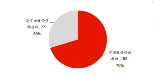 2014年美国共产生市政固废2.58亿吨,其中没有回收再利用价值的固废约有0.77亿吨,占比约为30%(主要来自食品、庭院装饰品、其他无机废弃物,此类废物主要通过堆肥等方式处置,为了还原成和中国可比的回收再利用口径,假设这类废物回收再利用率为0%),有回收再利用价值的固废约有1.82亿吨,占比约为70%,主要包括、、废钢铁、废有色金属、废塑料、废橡胶与皮革、废纺织品、废木制品、其他材料,2014年美国再生资源化总量为0.66亿吨,占总的市政固废产生量的比例为25.7%。