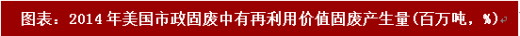 2014年美国市政固废再生资源量为0.66亿吨,整体回收再利用率为36.6%。