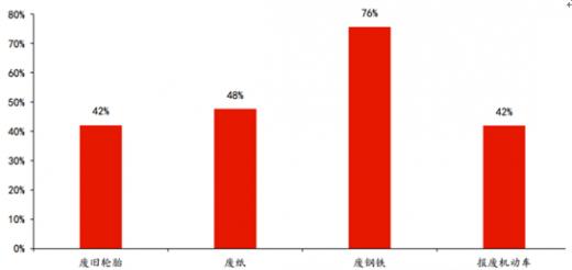 图表:2016年我国主要废弃物回收率