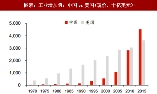2)从产业结构来看,我国仍以第二产业工业为主导,2015年全年工业增加值已经4.5万亿美元,首次超过美国。相比发达国家,我国全部工业增加值占gdp的比重(2016年占比为40%)更高,第二产业占比大,我们认为,随着经济结构转型和供给侧改革的推进,我国工业固废的产量可能缓慢下降,但仍将处于较高水平,将充分保障再生资源的废物来源。