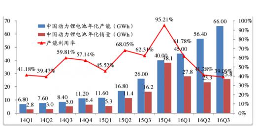 15q4抢装,产能利用率(95.1%)及出货量(9.5gwh)处于历史高位。16q1电池回补需求,呈现淡季不淡的旺盛需求。因补贴政策仍为落地,16q2&q3出货量相对稳定但产能利用率逐渐降低。
