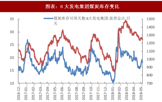 6大发电集团煤炭库存较上周继续回升,截止2018年6月8日煤炭库存可用天数为18.60天。