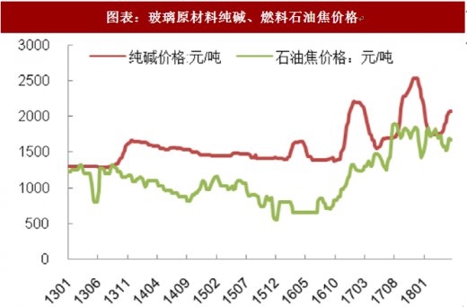 图表:玻璃原材料纯碱、燃料石油焦价格