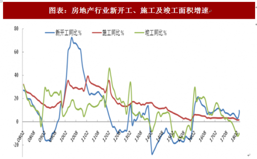玻璃下游需求中占比 70%以上来自于房地产,剩下是汽车市场(15%) 和其他一些领域。玻璃需求与房地产投资联系紧密,其中竣工面积增速对于 玻璃需求增速关联性强,而新开工可视为前端指标。2018 年 1-4 月房地产投资累计完成 3.1 万亿元,同比增长 10.3%。2017 年以来,随着房地产市场的调控政策和市场长效机制的推进,房地产投 资增速回落,且地产销售额和销售面积增速持续放缓,长期预计房地产投资 增速缓步回落。细分项目中,新开工、施工同比正增长,但增速均较去年同 期下滑;竣工面积负增长。环比看,新开工、竣工指标下滑。