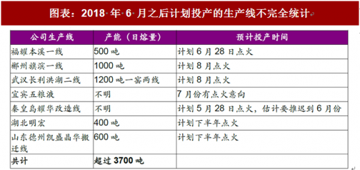 图表:2018 年 6 月之后计划投产的生产线不完全统计