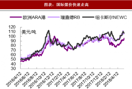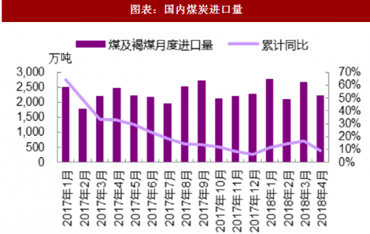 1-3 月,我国煤炭进口量 7541 万吨,同比增长 9.2%,4 月受进口煤限制政策以及煤价下跌影响,煤炭进口量仅为 2228 万吨,环比下降 442 万吨,同比下降 250 万吨,按照全年 2.5 亿吨的进口目标测算,下半年月均进口量仅为 1904 万吨,同时考虑到近期国际煤价大涨导致进口煤的性价比降低,预 计下半年进口难有增量。