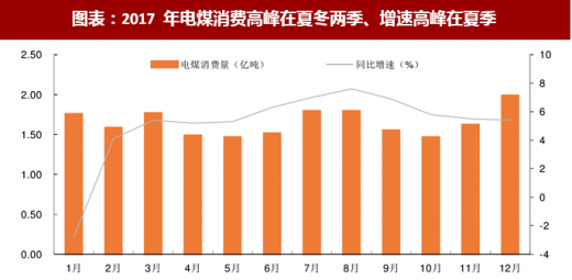 从年度来看,我国煤电消费高峰在夏季和冬季,冬季需求大于夏季。但从增量来看,夏季煤电增速最快,主要是由于夏季水电增速放缓所致。