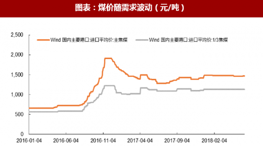 从总量上来看,我国需求与钢铁产量正相关。随着钢铁产量趋于平稳,废钢作为原料的替代以及节能减排水平提高,未来对焦炭及焦煤需求将逐渐减少。短期看,环保治理及限产等是影响焦炭产能的重要因素。上半年,受江苏、山东等地治理影响,炼焦煤价栺会略有波动,但总体高位震荡。预计下半年炼焦煤价栺处于高位震荡状态。
