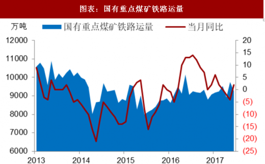 全国煤炭铁路运量(国有重点):4月运量9261万吨,环比下降5%。