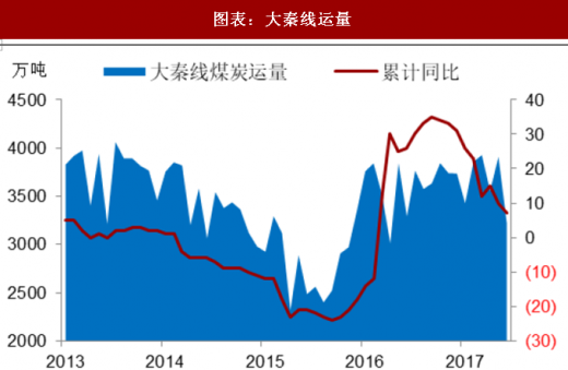 大秦线运量:4月大秦线运量3221万吨,同比下降2%,环比下降18%;1-4月累计发运14616万吨,累计比增长7%。