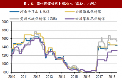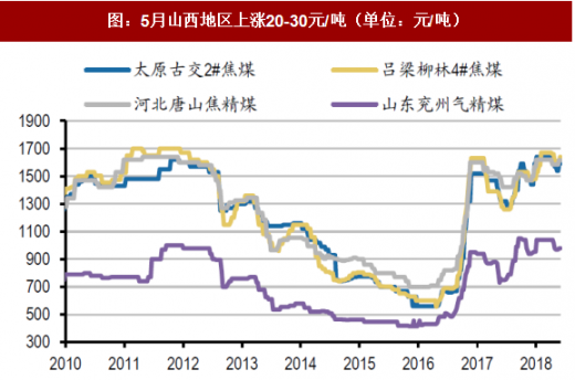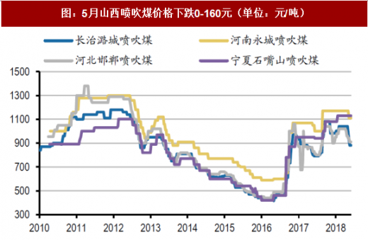 冶金煤:冶金煤价格有所回升、喷吹煤普遍下跌。冶金煤方面,山西地区下跌10-上涨60元/吨,其中晋中灵石2#肥煤车板价上涨60元/吨,吕梁柳林4#焦煤车板价上升30元/吨,太原古交2#焦煤坑口价下跌10元/吨;山东、河北、河南等地区产地价格大多维持稳定,除了河北唐山和河北开滦焦精煤出厂价上升30元/吨,贵州水城焦精煤出厂价下跌35元/吨。喷吹煤方面,长治潞城喷吹煤车板价下跌160元/吨,河南邯郸喷吹煤市场价下跌50元/吨,其余保持稳定。