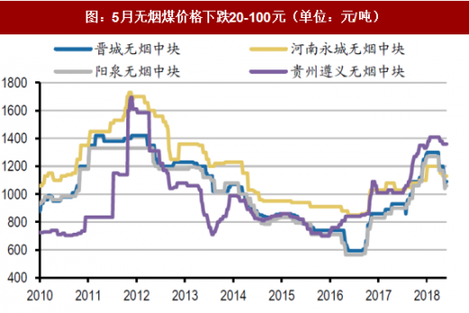 无烟煤:产地无烟煤价格普遍下跌,山西地区下跌110-120元/吨,河南地区下跌20-110元/吨,贵州地区下跌20元/吨。