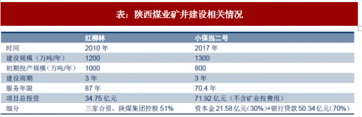 煤企近两年盈利大幅改善,其中一部分用于偿还前期的贷款,那么剩余的资金是否足够用来建设新矿呢?答案是否定的。我们统计了陕西煤业 2010 年和 2017 年建设煤矿的投资预算,可以发现,在煤炭资源、建设规模等基本条件相近的情况下,项目总投资预算基本翻倍;且之前煤矿建设由集团负责主要出资,现在是完全由公司自己承担。
