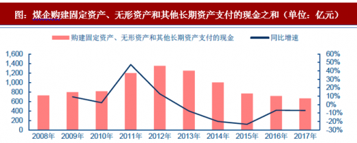 进一步从煤炭上市公司财务数据来看,现金流量表中的购建固定资产、无形资产和其他长期资产支付的现金这一科目具有一定的代表性,2009-2011 年煤炭行业景气上行周期中这一数据是持续上升的,2013-2015 年景气下行时不断走低;2016-2017 年煤价虽然大幅回升,但这一增速依然是负数。可见微观层面,公司固定资产投资的现金不断下滑,那么新煤矿开发的活动自然而然会减少。