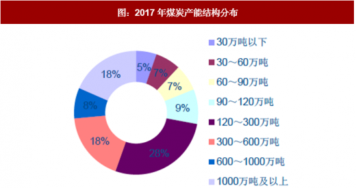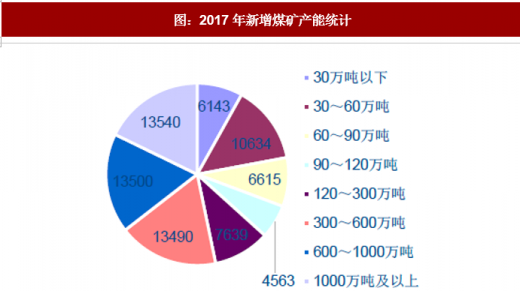 另一方面,按照煤炭行业“十三五”规划提出的目标,“十三五”期间,煤炭企业数量控制在 3000 家以内,5000 万吨级以上大型产能占比达到 60%以上。根据能源局的统计结果,新增煤矿产能主要集中在 300 万吨及以上,占比达到 53.24%,较 2017 年 6 月提升 3.30%。与此同时,我们可以看出产能在往大矿转移,其中 1000 万吨及以上的煤矿产能增速较快,2017 年占比较 2016 年大幅提升 2.84pcts。
