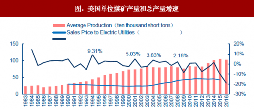 通过美国煤炭行业的发展情况可以看出,1986~2008 年,美国小矿(产量小于 10 万短吨)数量占比由 71%下降到 47%,虽然煤炭产量趋势性上升,但产量增速逐渐降低(控制在 /-5%以内),同时供给弹性也有所收窄。尤其是在 2000~2010 年这十年期间,美国煤炭售给电厂的价格是一直上升的,但煤炭产量的增速始终没有大幅的扩张。
