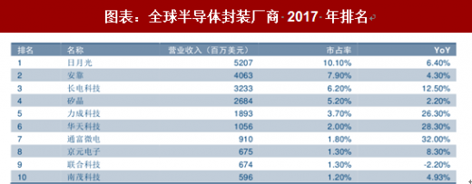 封测方面,未来高端制造 封测融合趋势初显,大陆厂商与台厂技术差距缩小。封装测试技术目前已发展四代,在最高端技术上制造与封测已实现融合,其中台积电已建立起 cowos 及 info 两大高阶封装生态系统,并计划通过从龙潭延伸至中科将 info 产能扩增一倍,以满足苹果 a12 芯片的需求。封测龙头日月光则掌握顶尖封装与微电子制造技术,率先量产 tsv/2.5d/3d 相关产品,并于 2018 年 3 月与日厂 tdk 合资成立日月旸电子扩大 sip 布局。由于封装技术门槛相对较低,目前大陆厂商正快速追赶,与全球领先厂商的技术差距正逐步缩小,大陆厂商已基本掌握 sip、wlcsp、fowlp 等先进技术,应用方面 fc、sip 等封装技术已实现量产。