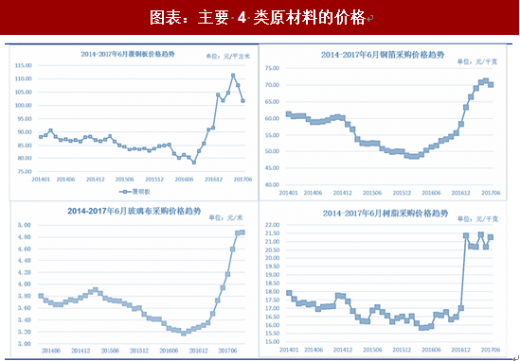 2016 年以后,环保政策趋严,关停和逼迁持续,供给进一步紧缩。受到铜箔涨价及环保督察的影响,覆铜板价格紧跟铜箔产品价格上涨。自 2016 年底开始,国内外各大覆铜板厂商陆续开始提价。其中,覆铜板龙头建滔积层板在 2016 年一年内先后涨价 6 次;2017 年,涨价潮持续,7 月份以来,已经有数家产业链企业(如山东金宝、建滔积层板等)再次上调其铜箔和覆铜板价格。