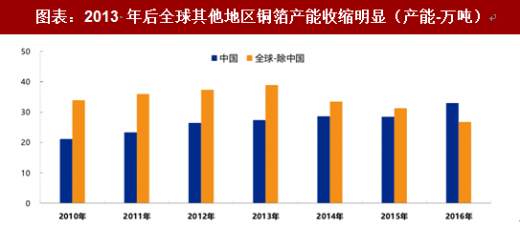自 2008 年金融危机开始,pcb 用铜箔需求一蹶不振。同时,“四万亿”后冶炼行业普遍产能过剩,铜箔行业的上游铜价因此持续下跌,铜价从 2010 年的 7.4 万/吨下降到 2015 年的 3.3 万元/吨。铜箔价格出现了长达数年的单边下跌,本轮周期杀伤力过大,铜箔厂商因此丧失了以往存货调节的机制(成本锁定)。到了 2015 年,部分铜箔厂商已经无法支撑,被迫关厂或减产。2015 年的供给侧改革加速了铜箔行业产能退出的过程,覆铜板用铜箔开始出现短缺。