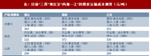 山西省煤炭主要通过大秦线达到北方港口,然后再通过海江联运的方式到达“两湖一江”。