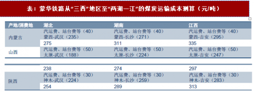 由于没有山西企业参股蒙华铁路,预计分配给山西煤炭的运力不会太多。在陕、蒙煤炭南下运输费用具有竞争力的情况下,预计山西煤炭将专注于供给周边省份如河北、河南、山东等,以及东部沿海城市。