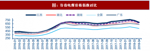 一方面,目前由于运费的原因,导致以“两湖一江”为主的省份用电成本高于全国水平,这可以从各省的电煤价格指数中看出(电煤价格指数主要反映电煤到厂价格)。当蒙华铁路建成通车后导致的运输费用料将下降 60~80 元/吨,这一部分利润则会分配给生产者(煤炭企业,煤炭售价有望上升)和消费者(下游电厂,电煤成本有望下降),而利润的分配比例取决于生产者和消费者的相对弹性(由于测算的蒙华铁路运费已达国铁标准规定的上限,所以中间运输环节以获得利润分配 0 来考虑)。我们选取了 2016~2018 年全国煤炭产量与消费量的环比变化数据,根据以下公式测算的结果(p 代表生产端的产量,v 代表煤炭价格,c 代表消费端的消费量),消费端的弹性系数略大于生产端的弹性系数,消费端/生产端的弹性系数比值大约为 1.5,则预计煤炭售价(主要指“两湖一江”)能提升 36~48 元/吨,较 2017 年秦皇岛 5500 大卡动力煤均价(638 元/吨)提升 6%左右;而消费者(电厂,主要是“两湖一江”)的电煤采购成本将下降 24~32 元/吨,较“两湖一江”三地 2017 年平均电煤价格指数(659 元/吨)下降 3%~4%。