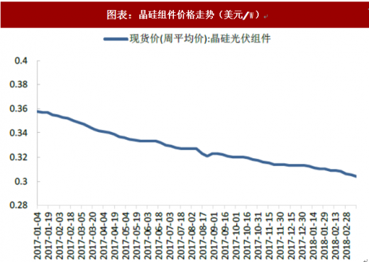 光伏产品价格的下降使得光伏装机成本不断下降。在水电水利规划设计总院公布的2017年光伏发电应用领跑基地申报电价中,最低申报电价普遍低于应用领跑基地当地光伏上网标杆电价40%左右。