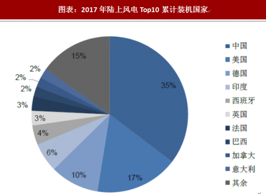 图表:2017年陆上风电top10累计装机国家