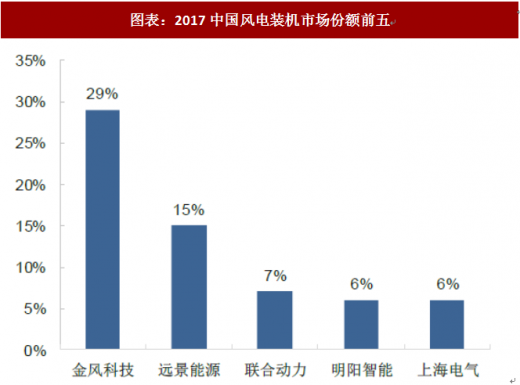 图表:2017中国风电装机市场份额前五