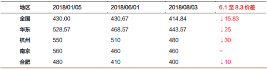 (2)提价幅度方面,上限对比年初价格最高时点,突破或持平是不确定点。价格下滑幅度小是淡季不淡最直观的体现,比如国均价从 6 月初至 8 月初仅有 15 元跌幅,华东地区从 6 月初至今跌幅仅 25 元/吨,因此对旺季涨幅有较小担忧。2018年春节前江浙皖熟料价格 500-510 元/吨,上海、南京、杭州、合肥水泥价格分别为 590、560、550、480 元/吨,水泥价格达到阶段顶点。参考年初高点得出,目前我国水泥价格仍然有 120、100、70、80 元/吨空间。