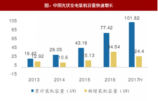 2016年全球光伏安装量整体持续增长,日本、法国、英国等发达国家有所下降,中国新增容量34.5亿瓦,成为全球增长贡献最大的国家。2017年上半年,中国装机容量增加24.4兆瓦,超过去年同期,此外,国家能源局出台规划指出未来4年( 2017-2020)光伏发电指标为86.56w,光伏装机容量持续增长,将拉动石英柑祸行业景气回升。