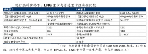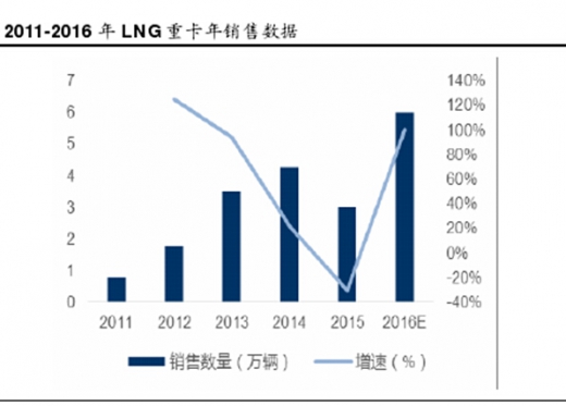 2015 年由于石油等能源价格大幅走低、油气价差减小 lng 性价比减弱,2015年全年销量只有 3 万辆。但经过去年发改委调价 lng 重卡重获经济性,中国汽车工业协会、天然气产业资讯等专业网站预测 2016 年 lng 重卡销量为 6 万辆。