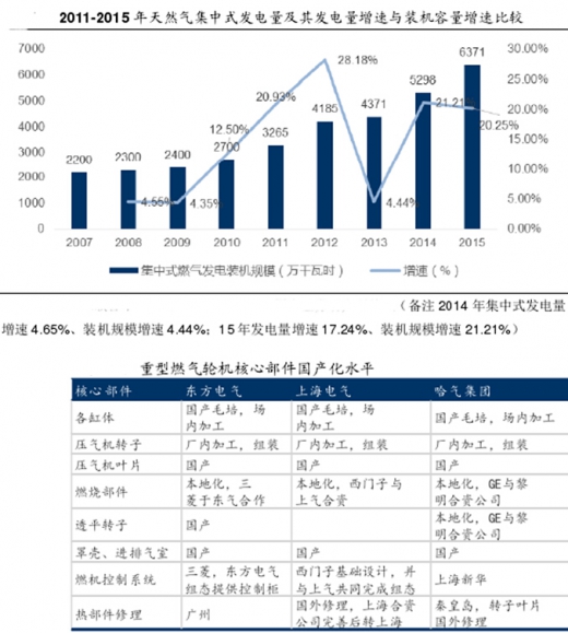 2)发改委规划、环保政策的助推,天然气发电及煤电改气电项目发展加快,十三五期间将有更多集中式天然气发电项目开工建设、投入运营。