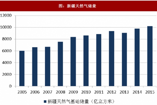 新疆是我国重要的天然气产区,天然气资源丰富,主要分布在三大盆地:塔里木盆地、准噶尔盆地、吐哈盆地。2015 年,新疆的天然气基础储量为10,202亿立方米,占全国的19.64%。