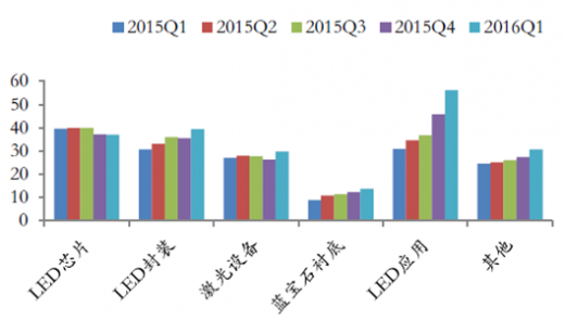 2016年q1,光电板块整体实现收入26.7%的同比增速,高于电子行业平均水平,其中led应用同比增长58.5%。
