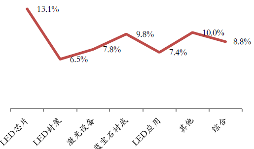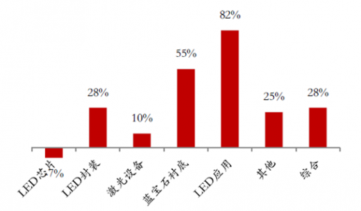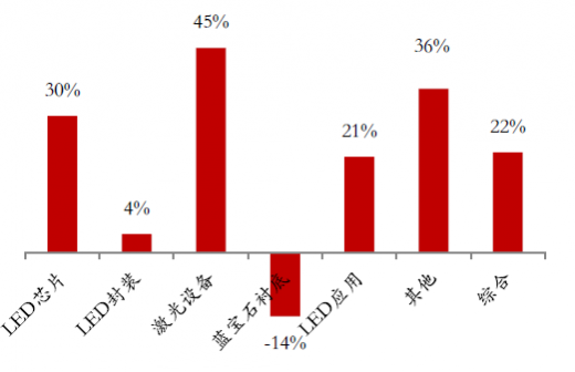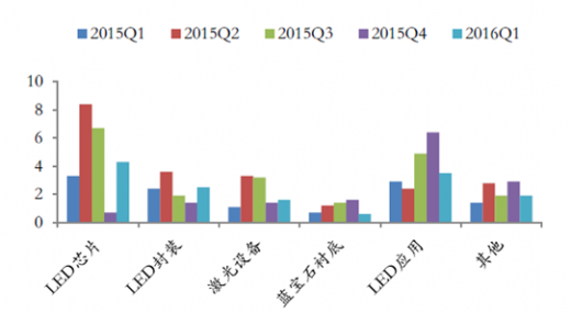 2015年度,光电板块整体实现收入18.9%的同比增速,其中led应用和其他领域同比分别增长44.5%、25.1%,表现较好。