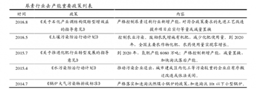 此外,今年下半年以来环保高压政策影响全国范围内化工企业生产,尿素行业同样深受影响。例如全国10万吨以下蒸汽小锅炉要求强制拆除,切换成天然气或电力,使得中小企业成本进一步上升。入冬以来,华中、华北、华东在内的大部分区域空气污染指数长期处于重度级别,促使各地环保政策针对工业污染实行减排措施,要求停产限产,尽可能地减少二氧化硫、烟(粉)尘、氮氧化物等排放量。煤头尿素生产过程中会产生二氧化硫、二氧化氮等废气及粉尘污染,若要达到合格排放需配备脱硫脱硝和除尘装置,以华鲁恒升为例,公司近两年在这方面每年的投入超过1亿元。即便在大量环保投入情况下,12月19日北京及周边地区发布雾霾红色预警,山东、河北、河南等地的尿素生产企业均接到了限产通知,使得这些地区日产量进一步下降。我们认为随着国家和民众对环保要求日渐提高,同时治霾问题也将成为我国未来需要长期应对的课题,环保高压政策在未来将持续实施。环保投入的加大势必增加行业的平均成本,无力投入环保的中小企业只能被迫停产,在长期政策影响下复产难度增加,即便复产也难以维持长期稳定生产,间断性开车生产只会进一步导致成本增加,因此受环保政策影响,中小产能有望加速退出。