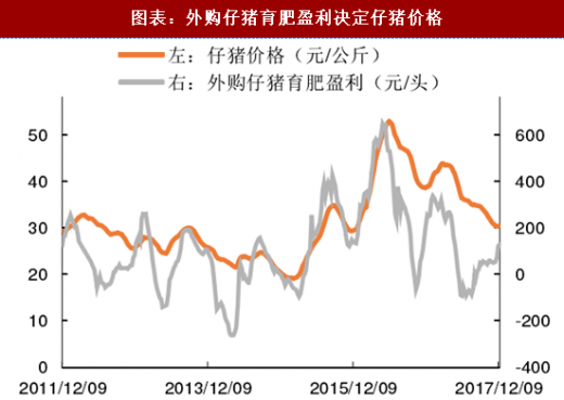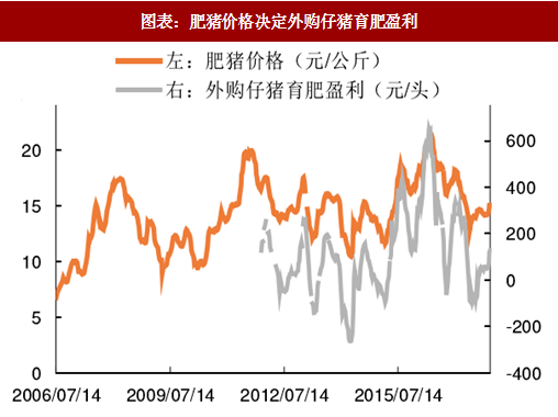 外购仔猪育肥盈利决定仔猪价格,目前仔猪价格为 30.40 元/公斤,外购仔猪育肥盈利为120.74 元/头。 仔猪价格决定仔猪出售盈利、母猪价格。出售仔猪盈利、出售肥猪盈利、母猪价格决定母猪是否扩张、主动淘汰。