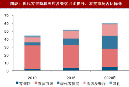 下游销售渠道的品牌化,倒逼屠宰行业整合。随着现代零售渠道的发展,为冷鲜肉的消费提供了基础,冷鲜肉和冷冻肉的销售渠道主要是以现代零售渠道和餐饮为主,近几年现代零售商和酒店及餐饮的占比提升,相反农贸市场的占比下降。下游现代零售渠道和餐饮渠道更加注重产品的品牌和品质,随着下游销售渠道的品牌化,对于大型屠宰加工企业采购的需求会增多,进一步倒逼屠宰加工企业的整合。