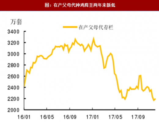 引种缺口是白鸡核心逻辑,看好明年鸡价持续上涨。认为白鸡持续上涨的关键因素肯定是——引种封关导致的供给不足。2015-17年三年的引种规模实际均不能满足下游需求,之所以白鸡价格尚未启动持续上涨行情,最重要的原因是此前过量引种的影响还未消退。2014年引种量为118万套,远超市场均衡所需的90万套,在这部分引种尚未退出前白鸡上涨难度较大。根据白羽肉鸡生产周期,引种的祖代鸡经过64周后提供最后一套父母代种鸡蛋,该套父母代种鸡蛋经过3周孵化后,又经64周将提供最后一枚商品代鸡蛋,该枚商品代鸡蛋,经过3周孵化,再经6周育肥后方可出栏。这意味着2014年底引种的祖代鸡,要经过143周后(即2017年9月),其扩繁的最后一只毛鸡才会出栏。届时,白鸡或将真正进入持续上涨通道。