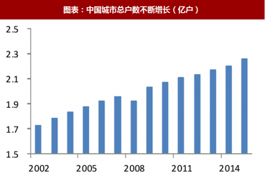 人均宠物量远低于成熟市场国家,成长空间广阔。根据狗民网与 appa 的统计与预测, 2017 年中国宠物、的数量为 8746 万只,美国为 1.839 亿只。对应的人均拥有宠物猫数中国为 0.04 只,美国为 0.29 只,是中国的 7.25 倍;人均拥有宠物狗数中国为 0.03 只,美国为 0.28 只,是中国的 9.3 倍。我国人均拥有宠物量远低于美国这样宠物市场发展成熟的国家,随着人们养宠意识的兴起,未来中国宠物数量会有巨大的增长空间。家庭户数的增长是宠物数量增长的基本保证。养宠多是以家庭为单位的,国家统计局数据显示,我国登记在案的家庭户数保持稳定增长,城市总户数从 2010 的 2.08 亿户增长到 2015 年的 2.26 亿户。家庭户数的增长为养宠数量的增加奠定了坚实的基础。