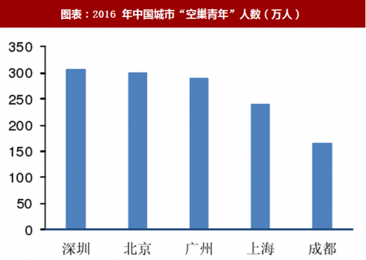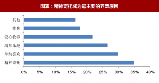 家庭多代群居消退促使养宠家庭占比的提升。2016 年,仅北上广深和成都的空巢青年人数就高达 1300 万,全国 65 岁以上的人口占比达到了 10.8%。随着一线城市“空巢青年”和丁克家庭数量的增多,以及人口老龄化趋势的加重,需要“精神寄托”的人越来越多。而通人性的宠物是满足这一“精神寄托”需求的重要选择。