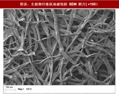 早期的机油滤纸完全由植物纤维构成,主要针对粒径为 40 -80 微米的污染物进行过滤。就当时的技术条件而言,由于滤纸制造的原料容易获取,易加工,过滤阻力低,效率高,体现出了很高的性价比,很快就取代其它材料成为机油过滤材料的主流。图 1 是全植物纤维机油滤纸的 sem 照片。