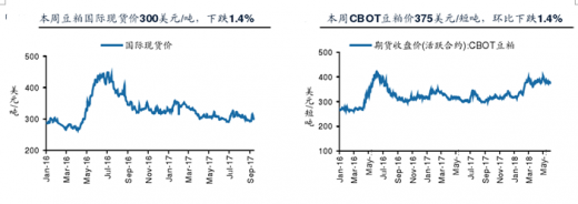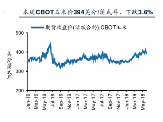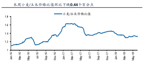 图15:本周国内玉米现货价1843元/吨,环比下跌0.1% 图16:本周大连玉米期货价1768元/吨,环比下跌0.6%