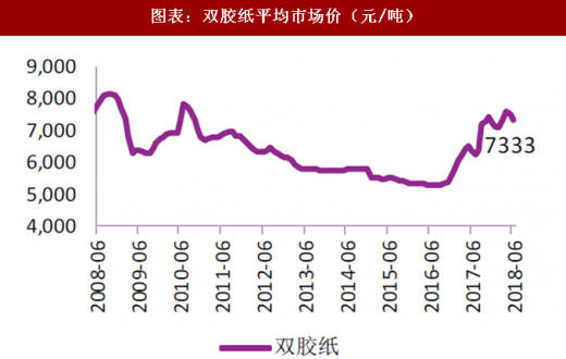 从供给方面来看,全球纸浆供应量略有增长。我国是全球木浆主要消费 国之一,木浆以进口为主,进口木浆量占比达 60%-70%。随着宏观经济预 期转好,2017 年以来全球木浆新增产能逐渐落地,根据中华纸业网统计, 针叶浆 2017 年和 2018 年全球投放产能分别达 137 万吨和 102.5 万吨,阔叶浆 2017 年和 2018 年新增产能为 190 万吨和 236.5 万吨,每年新增产量约占全部纸浆产量的 1.7%,产能增加有限。截至 6 月 8 日,浆价已位于历 史高位,国内木浆平均价达 6255.25 元/吨,同比增长 25.41%,预计后期浆 价继续上涨的可能性不大。