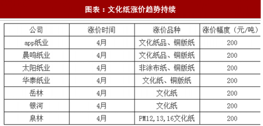 中期看 q4 春季教材备货迈入行业旺季,基于成本价格支撑以及需求上升,价格仍有上升空间。