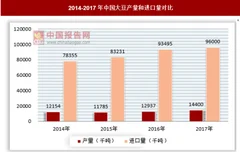 国家统计局数据显示,2017年中国大豆产量1440万吨,同比增长12.4%。海关初步统计数据显示,2017年我国累计进口大豆9600万吨,较2016年的9350万吨增加250万吨。可以说我国是一个大豆需求大国,但是90%以上的大豆来自进口。